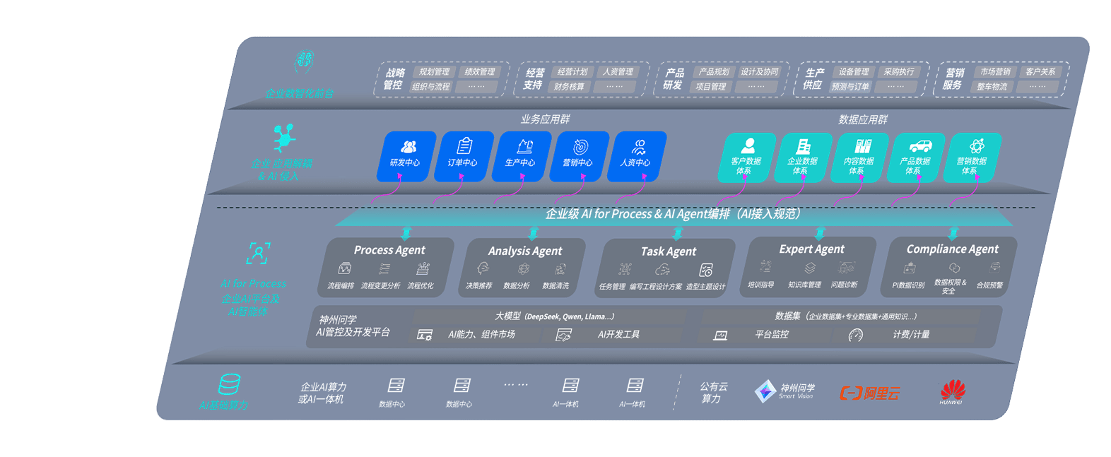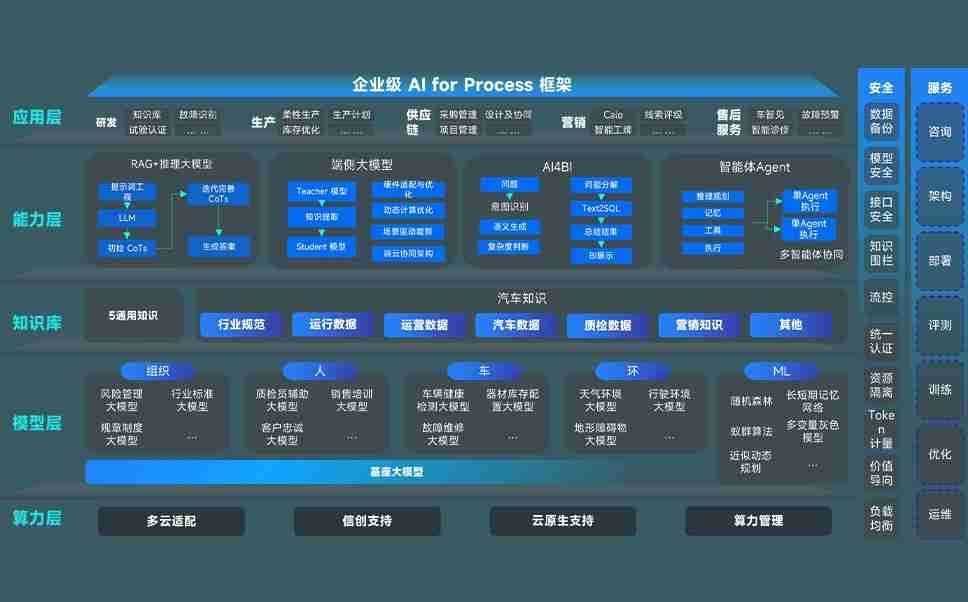 端到端的一站式AI工作空间深度融合了从企业战略规划到日常经营的全流程业务板块,,定向解决车企内部领域多、、部门多、、链条长、、、场景碎片化等难题,,,,支持车企快速构建以AI为核心的生产力写作体系,,,实现任务执行与AI能力的无缝集成与交互