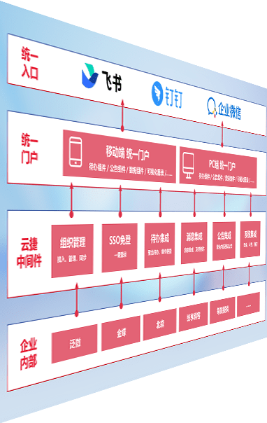 对协作平台提供支持服务,,,,支持企业应用与协作平台对接,,,包含组织同步、、消息集成、、待办集成等。。。。支持目前主流的协作平台:钉钉、、、企微和飞书。。。。